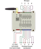 При замыкании и при размыкании входов контроллер отправляет СМС на телефонные номера пользователя. Тексты СМС устанавливаются для замыкания, для размыкания, для каждого из входов. Устанавливается 1-9 телефонов пользователя. После отправки СМС, контроллер обзванивает всех пользователей, если функция звонков включена. Звонки прекращаются, если один из пользователей снял трубку.