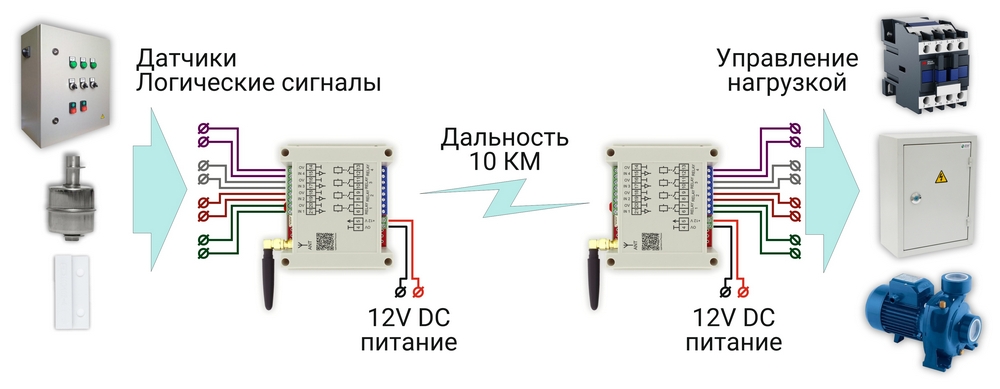 Комплект из двух контроллеров устанавливает связь автоматически, как только каждый из контроллеров получает электропитание. При этом на каждом из контроллеров загорается индикатор «связь». Контроллеры имеют уникальные ID, два контроллера из одного комплекта устанавливают связь только между собой. Другие контроллеры, находящиеся в радиусе приема радиосигнала, не влияют на работу двух контроллеров из одного комплекта.